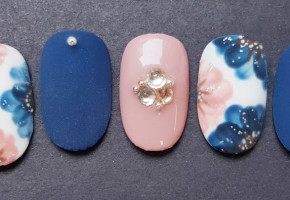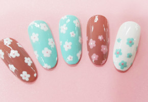 꽃모양과 비즈가 어울리는 네일아트