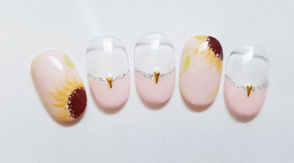 화사한 큐빅과 따뜻한 컬러의 네일아트